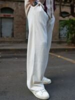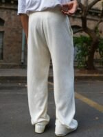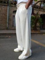 Cream colored solid baggy-fit mid-rise track pants, has an elasticated waistband with drawstring closure and two pockets