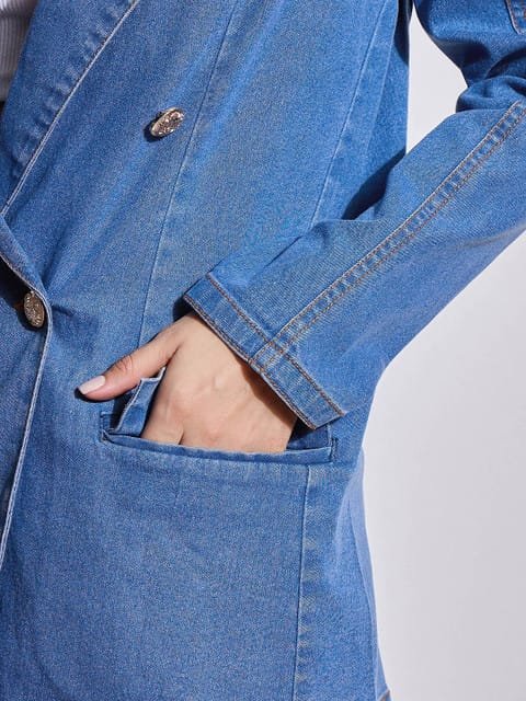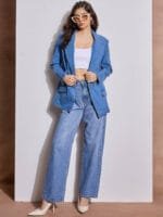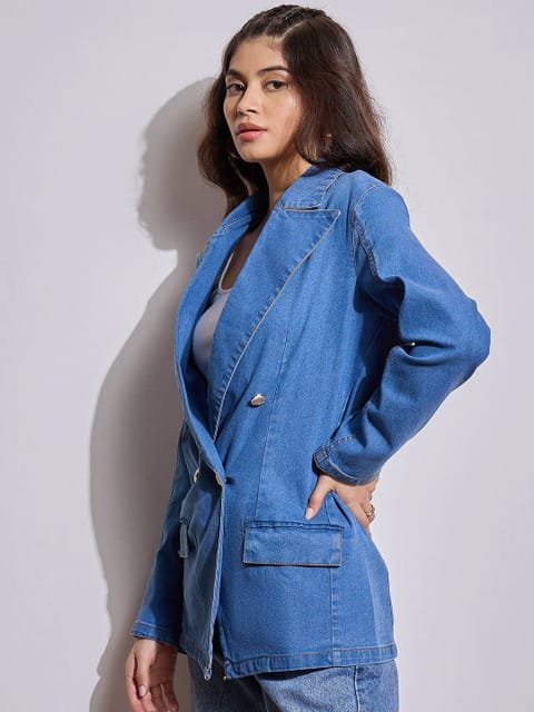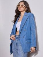 Absolute love with this denim blazer which goes with almost everything..material is very comfortable.it has padded shoulders which gives a perfect look n feel of a blazer..loved the color tooo.. worth the money !!