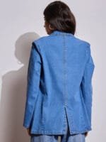 the material as comfortable and the product as a good quality item. the padded shoulders that provide a specific look. My review for this blazer”Fantastic fit and design!”. Absolute love with this denim blazer which goes with almost everything.i love it.