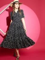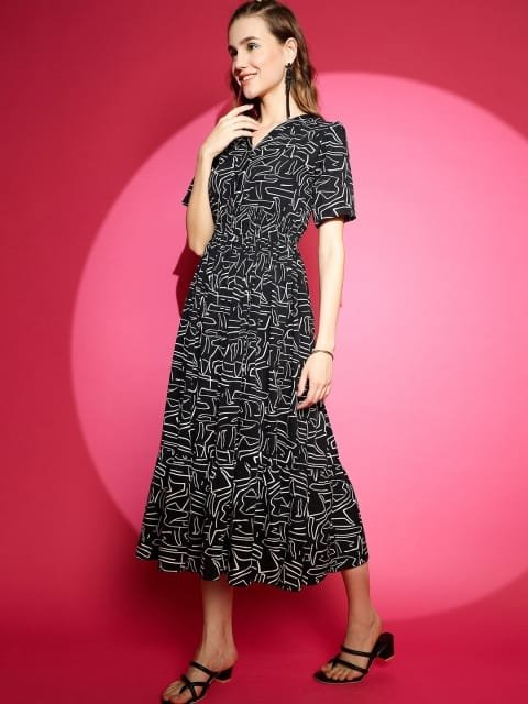 3 reviews for OnlyTrend Abstract Printed Fit & Flare Midi Dress