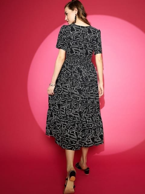 OnlyTrend Abstract Printed Fit & Flare Midi Dress