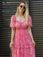 • Pink floral print Fit and Flare maxi dress
