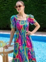 - Multicoloured abstract printed fit & flare dress