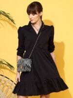 • Black solid shirt dress