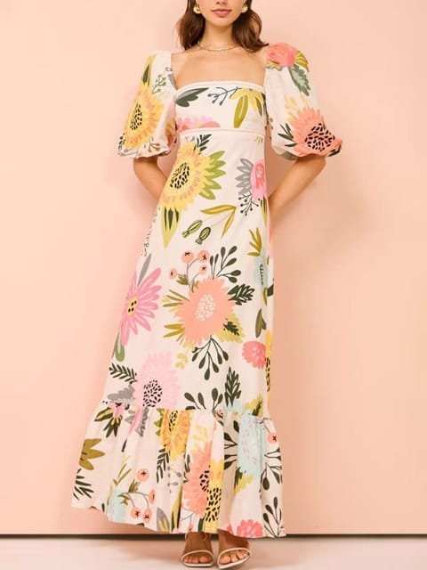 3 reviews for OnlyTrend x Revolte Polyester Floral Printed Puff Sleeves Maxi A-Line Dress