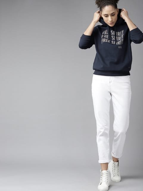 Get snuggled up in this amazing sweatshirt from Roadster. Head to the mall in comfort and style with this navy blue piece, a T-shirt and your favourite summer shorts.