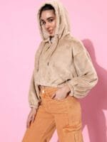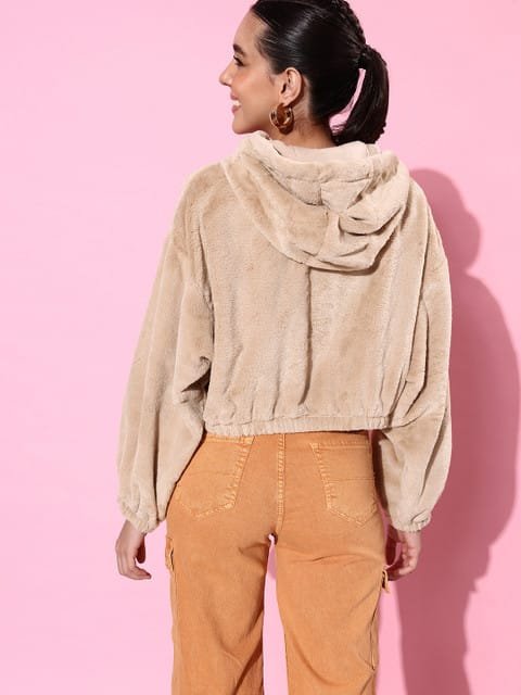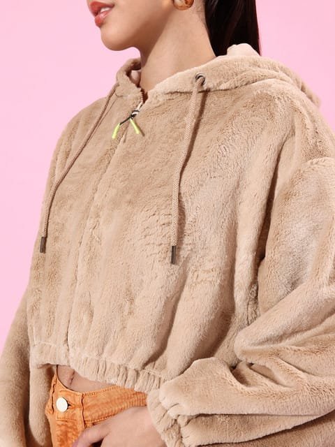 I LOVE THE FUR FABRIC!!! It’s soooooooo soft! Like a blanket around me (╥﹏╥)♡ I am a size medium but since it’s oversized (which seemed a bit too oversized for my taste) I reordered size small and the fit was just right for me. I would also like to mention that if you wear it over something, you’ll see some small fur strands sticking to it once you take the hoodie out but you can very easily remove them and it’s not a lot so it’s no problem. And it’s just soooooooo cozy and soft that nothing else matters, It’s So Worth It!