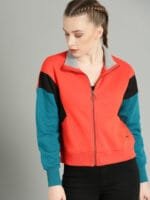 From Roadster, this snug sweatshirt makes a style statement. Layer this coral piece over a casual tee and match it with slim jeans when you’re going bowling with your friends.