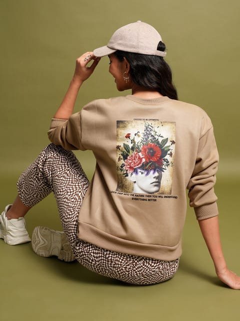 OnlyTrend Brown Floral Printed Oversized Sweatshirt