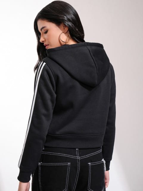 OnlyTrend Women Black & White Solid Hooded Sweatshirt